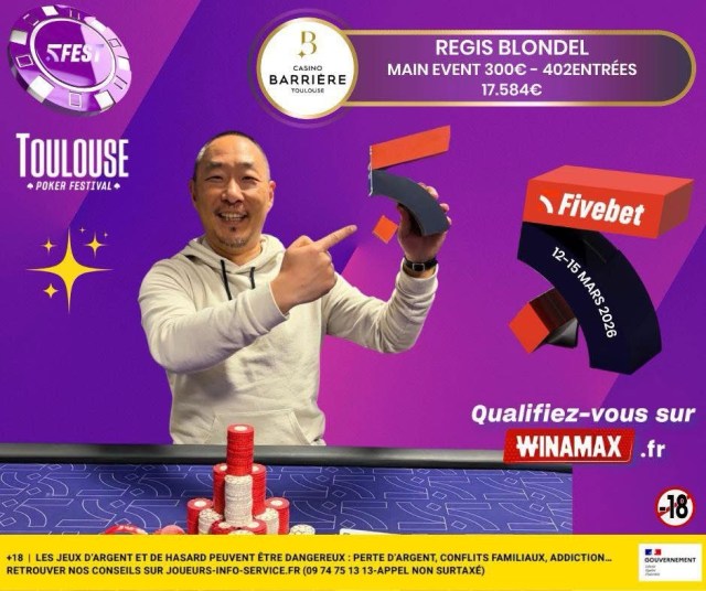 Le Toulouse Poker Festival a battu des records au Casino Barrière avec plus de 100 000 € de prizepool sur le Main Event. Régis Blondel s’impose sur un field de 402 entrées.