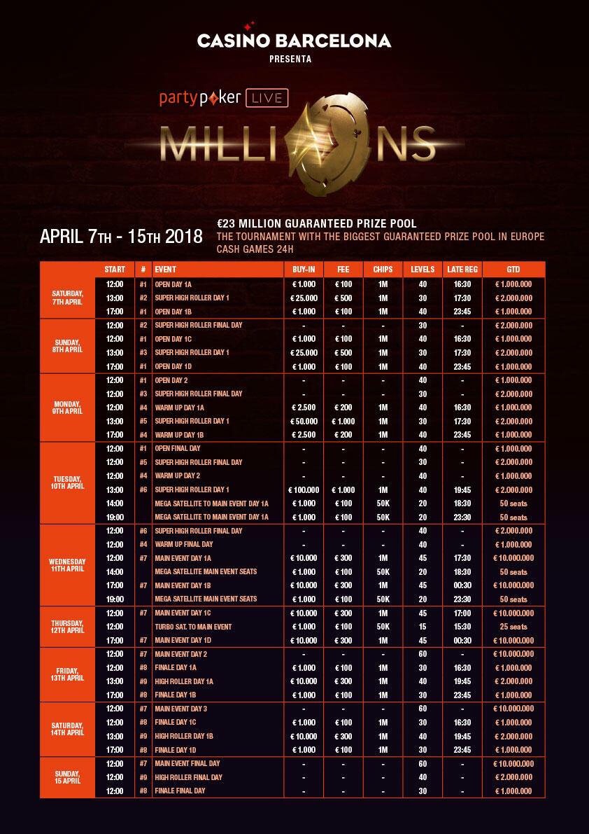 Du 7 au 15 avril, le festival de Poker événement se déroulera à Barcelone. Le programme devrait attirer les plus gros Sharks du circuit. 10 millions d’euros sont garantis sur le Main Event à 10 300€.