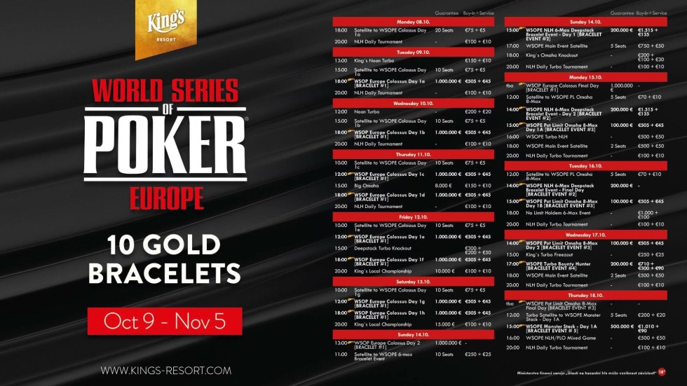 Nouvelle place forte du poker en Europe, le Casino King’s de Rozvadov va accueillir les World Series of poker Europe du 9 octobre au 5 novembre.