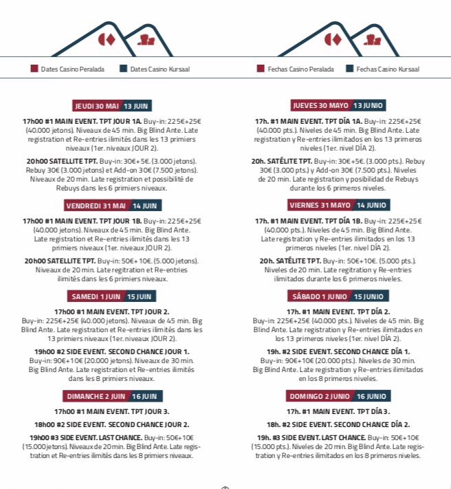 Le Casino Kursaal de St Sébastien offrira les mêmes tournois de Poker entre le jeudi 13 et le dimanche 16 juin