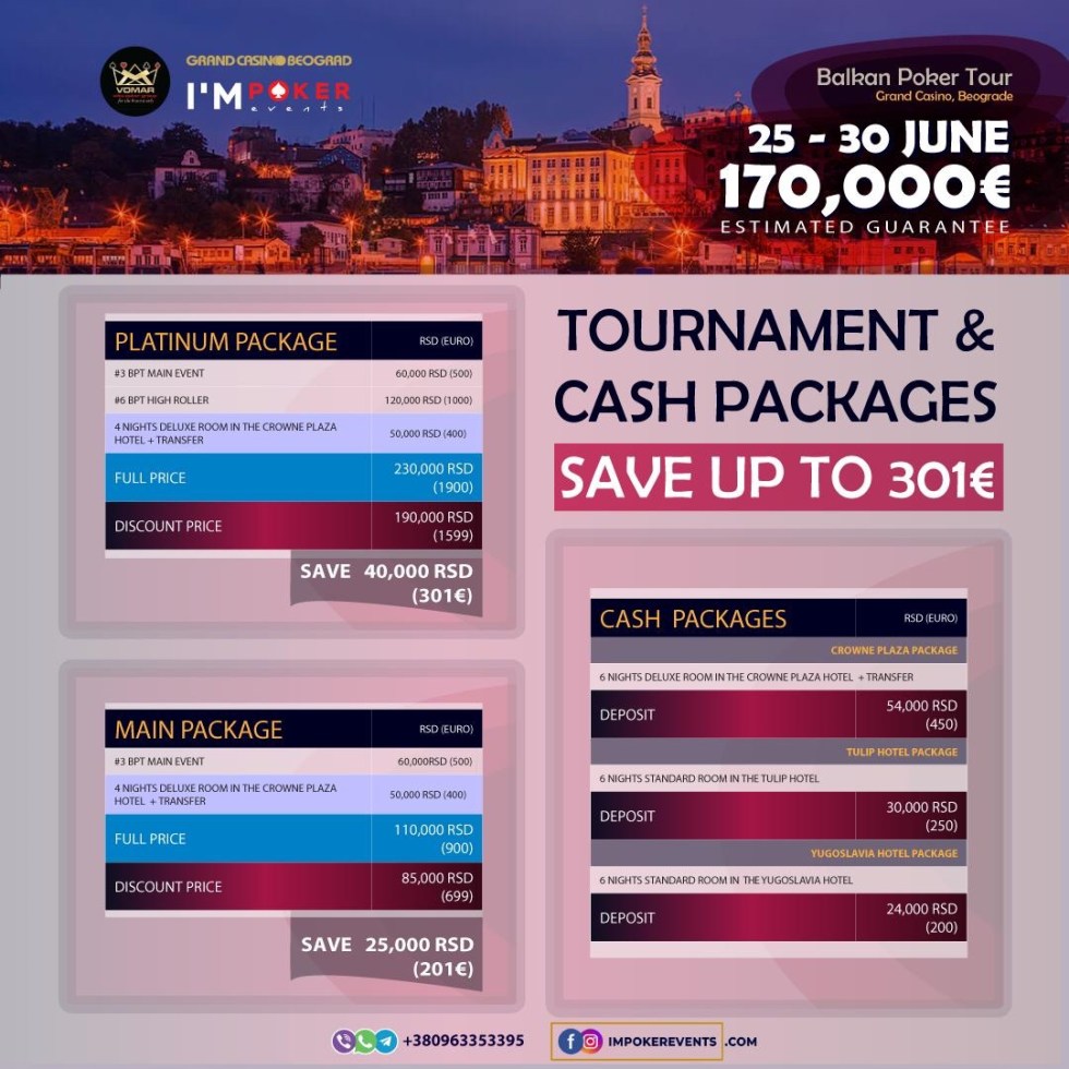 Le Grand Casino Beograd va accueillir du 25 au 30 juin le Balkan Poker Tour : un festival avec des Buy-in pour toutes les bourses. Cet événement organisé par ImpokerEvents s’annonce très prometteur. Les amateurs de Cash Game pourront aussi se faire plaisir durant cette période. L’occasion idéale de conjuguer poker et vacances.