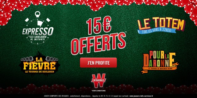 Sur Winamax, en ce moment, vous pouvez profitez d’un bonus de bienvenue poker exclusif : 15€ offerts (pour un dépôt minimum de 15€ sur le site), sous forme de deux tickets, 1 de 5€ et […]