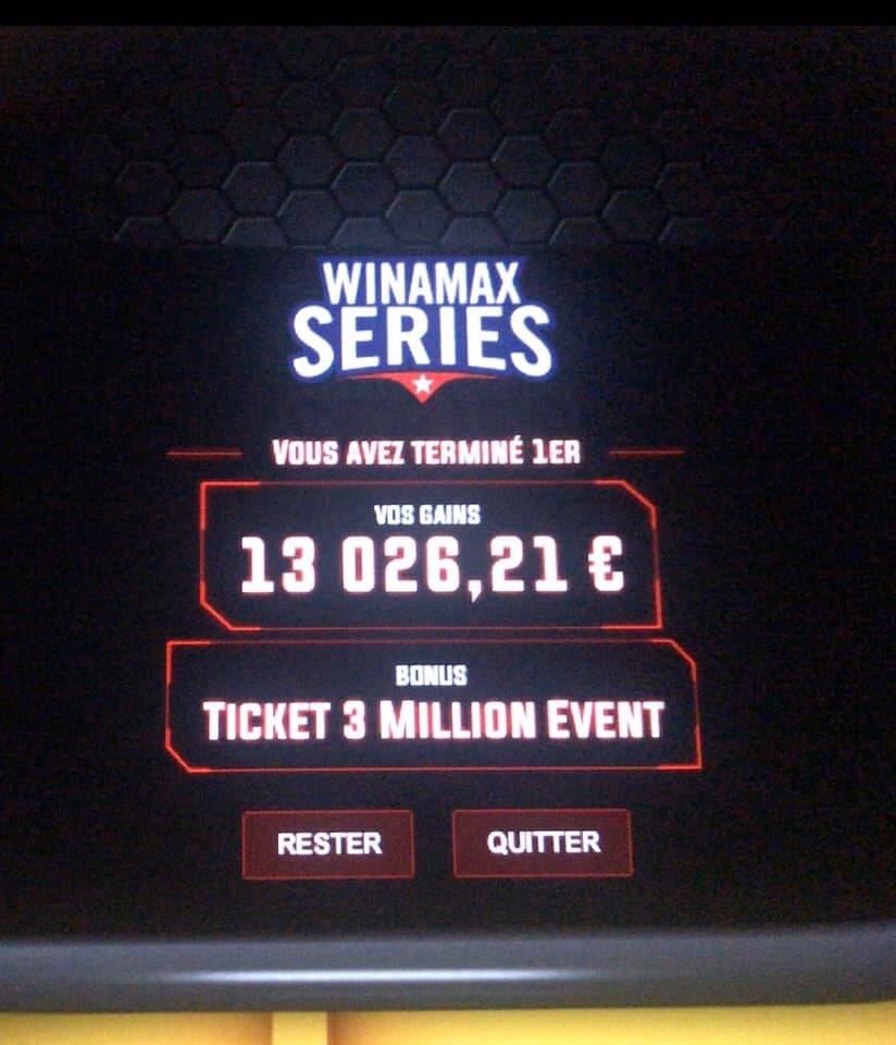 « je pleure comme un gosse les amis ,Vous savez pas à quel point ce titre des Winamax series me touche en plein cœur, Cela fait six ans que je cours après tout en apprenant les conseils de ceux avec qui j’ai appelé le Poker, il est actuellement 3h du matin et je viens de finir premier sur 1650 joueurs du tournoi à 50 euros , je n’ai jamais rien lâcher même dans les moments dur et aujourd’hui ca PAYEEEEEEEE… ». Le joueur a été abondamment félicité par toute la communauté poker.