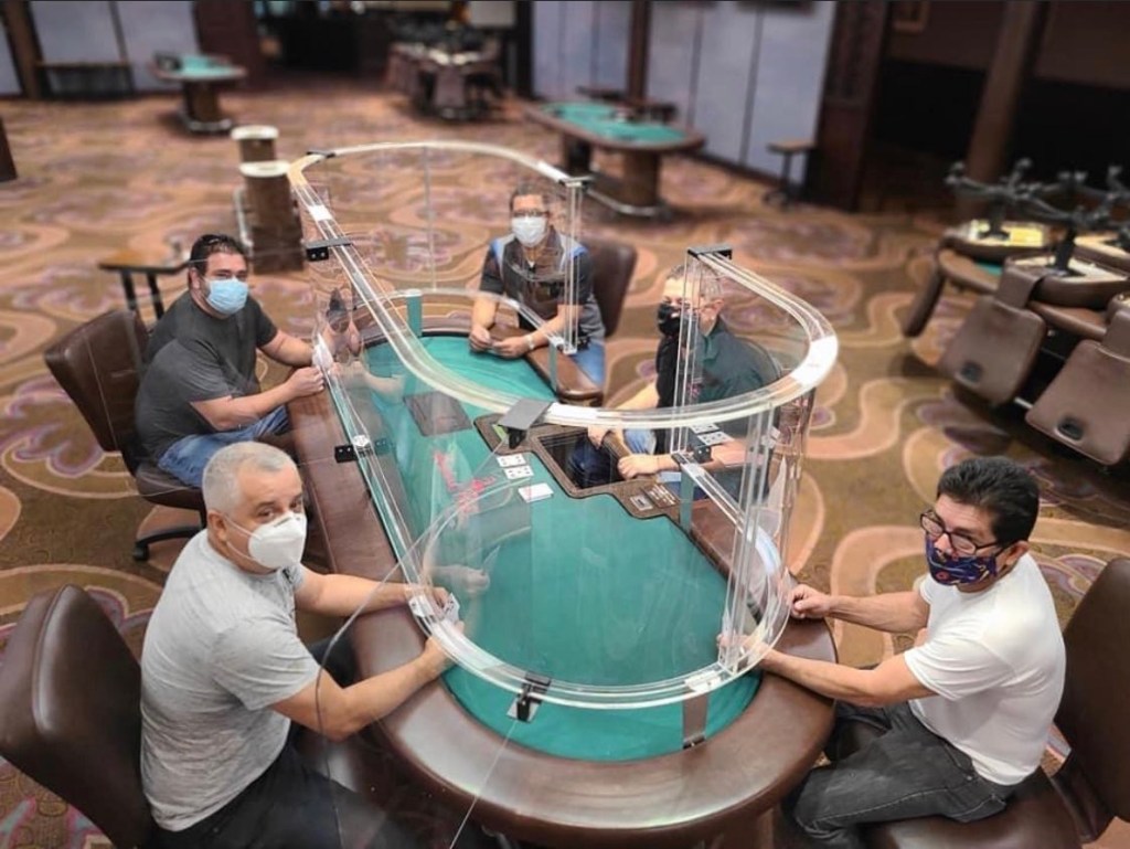 Les dirigeants d’une poker room du Casino de Hialeah en Floride viennent de dévoiler un prototype pour une table de poker avec une paroi en plexiglass de forme arrondie qui fait donc le tour de la table. Ce modèle est pour le moment inédit. Est-ce que ce genre de table va devenir la norme ? On peut se poser la question. La particularité de cette table est qu’elle imagine une reprise des tables de poker en 4 max. Une solution qui n’a pas les faveurs des organisateurs en France. Pour des raisons de coûts et d’intérêt pour les joueurs. A noter que pour le moment, seules les parties de Cash Game pourront reprendre, pour les tournois, il faudra encore attendre.