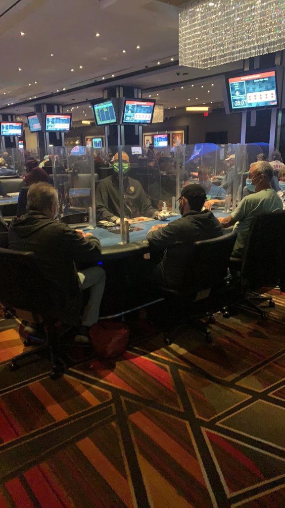 Ce 21 mai, c’était le grand jour pour cette poker room de Floride. Avec ces nombreuses règles, les joueurs de poker allaient-ils être au rendez-vous ? Eh bien, la réponse est oui. Le casino n’avait ouvert, pour des raisons sanitaires, qu’une dizaine de tables sur 26, au format 6 max. Au bout de deux heures, elles étaient toutes pleines et plus de 100 joueurs étaient sur listes d’attente pour jouer en Cash Game, sur différentes variantes. Tous les joueurs étaient masqués.