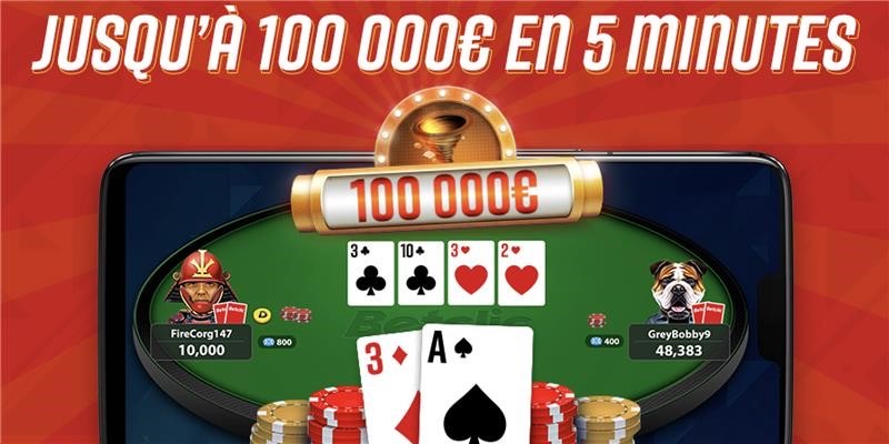 Sur Betclic, l’offre de poker est très large avec des tournois et du Cash Game. On peut aussi jouer au format Twister. Il s’agit de parties ultra rapides qui se jouent à 3 joueurs. Sur ces Sit & Go, les gains potentiels sont attribués de manière aléatoire. Vous pouvez multiplier votre mise de départ par 1000 en une seule partie, si la chance vous sourit. Les buy-in proposés s’échelonne de 1€ à 100€. Chaque joueur dispose d’un stack de 500 jetons et les niveaux de blinds augmentent toutes les 3 minutes.