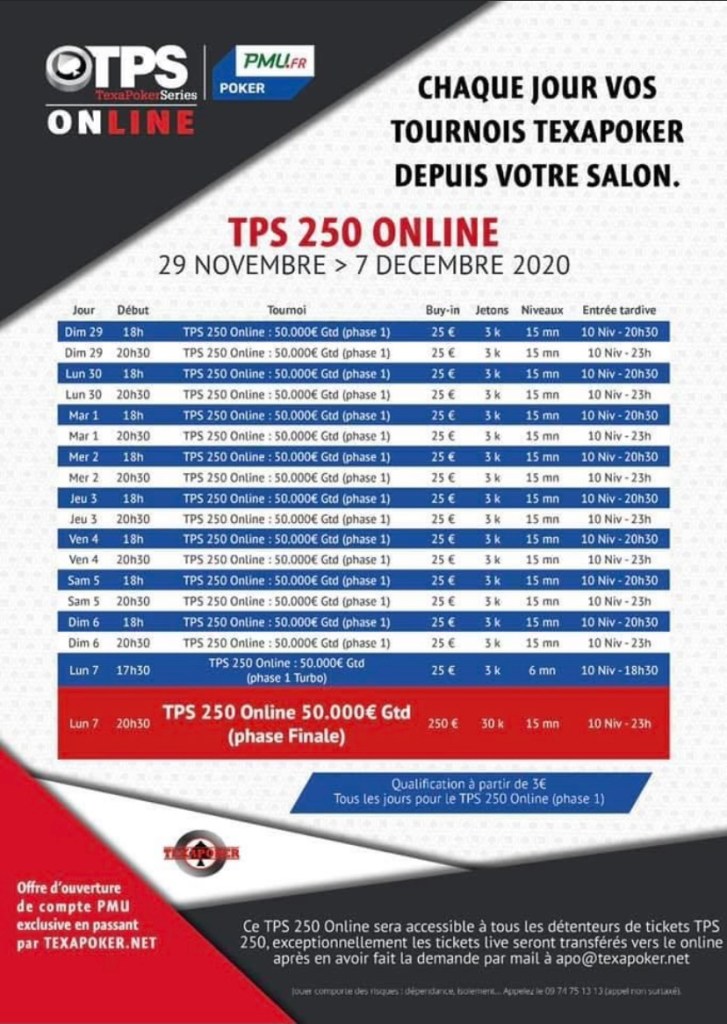 Le circuit TPS organisé en partenariat avec Texapoker ayant dû faire une pause comme l’ensemble des évènements poker live, PMU Poker a décidé de proposer une alternative en ligne avec un tournoi évènement, le TPS 250 Online – 50K€ GTD.