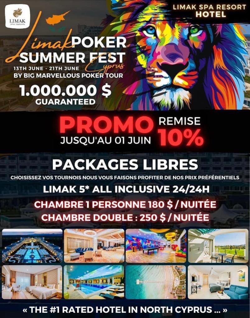 Le Limak, un hôtel de luxe 5 étoiles à Chypre, va accueillir du 13 au 19 juin le Poker Summer Fest : un festival dont le Main Event propose une garantie de 300.000$. De nombreux Side Events avec des Buy-in variés sont aussi au programme. Cet événement promet d’attirer des joueurs du monde entier. Le Cash Game sera aussi à la fête durant cette période.