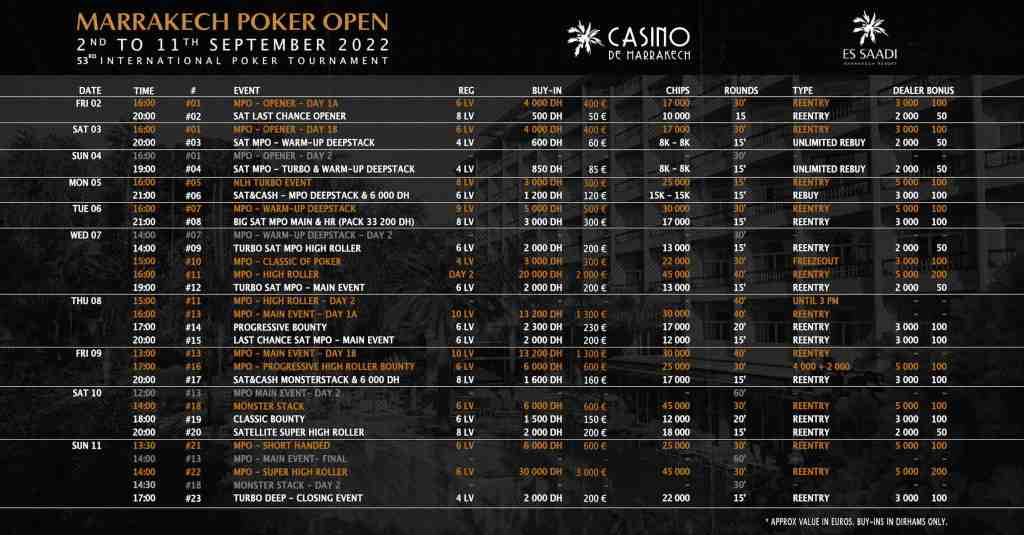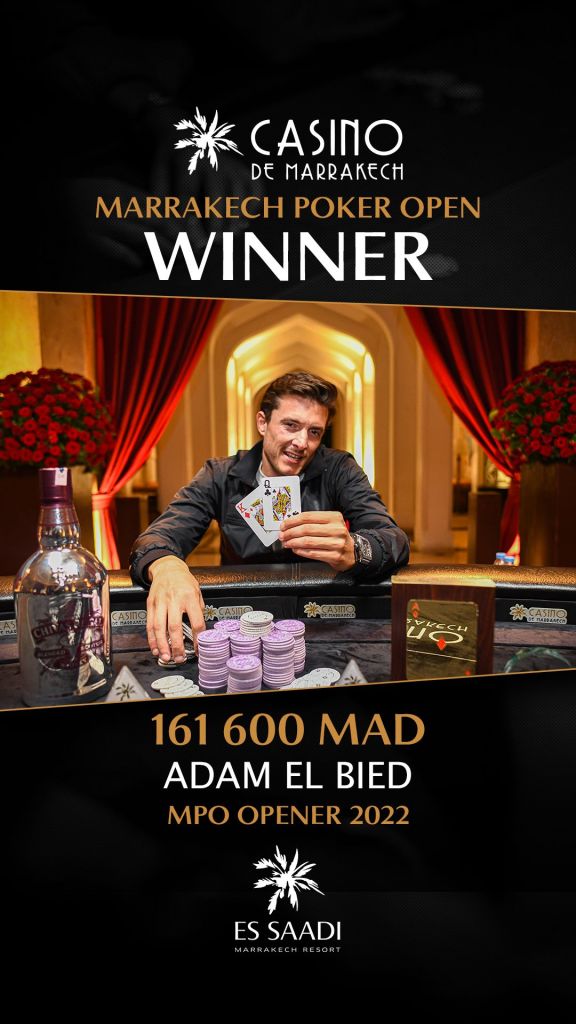 Le week-end dernier, le Casino Es Saadi a donné le coup d’envoi de son festival Marrakech Poker Open avec l’Opener. Un tournoi à 400€ de Buy-in qui a rassemblé 239 entrants au total. C’est le marocain Adam El Bied qui s’est imposé en captant le plus grande part du Prizepool.