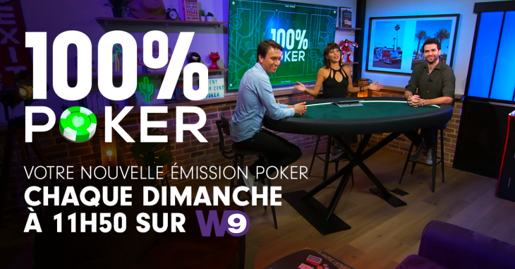 Trois années après l’introduction de l’émission Poker Express sur les chaînes du Groupe M6, une toute nouvelle émission fera son apparition en ce dimanche 24 septembre à 11h50, grâce à la collaboration entre Winamax et W9 : « 100 % Poker ».