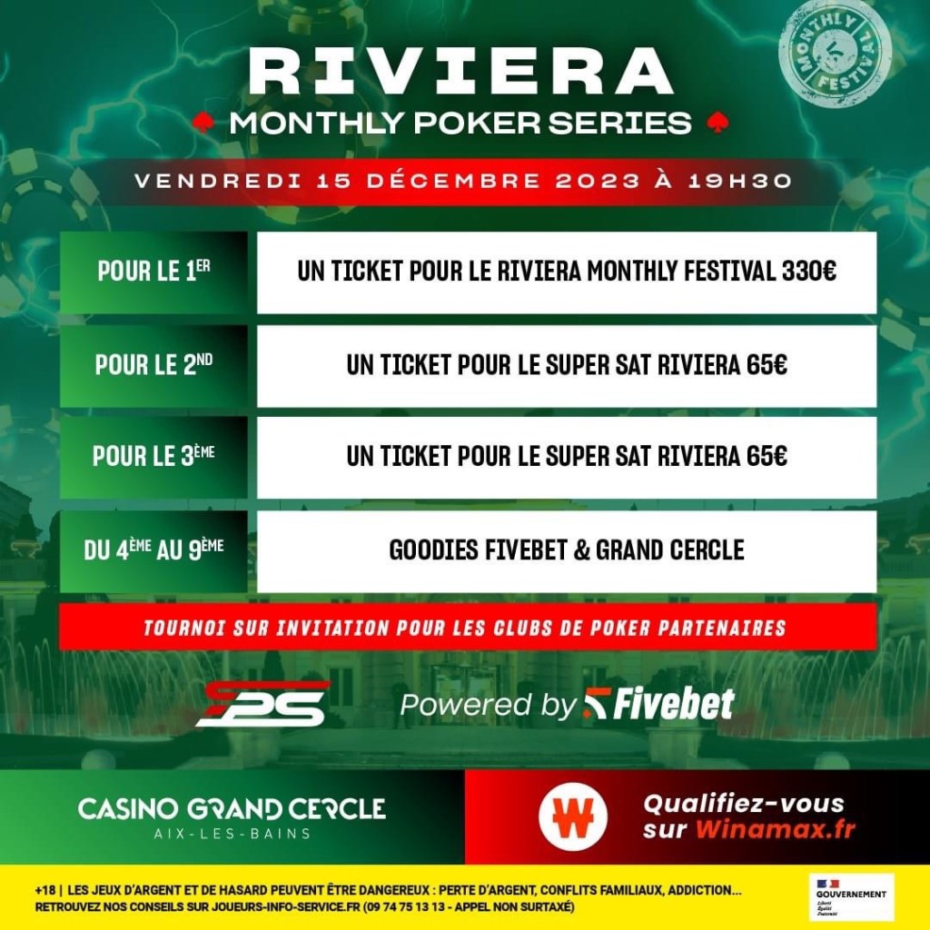 Le vendredi à 19H30, un événement spécial attend les 17 Clubs partenaires du Grand Cercle avec le Riviera Freeroll Poker Series.