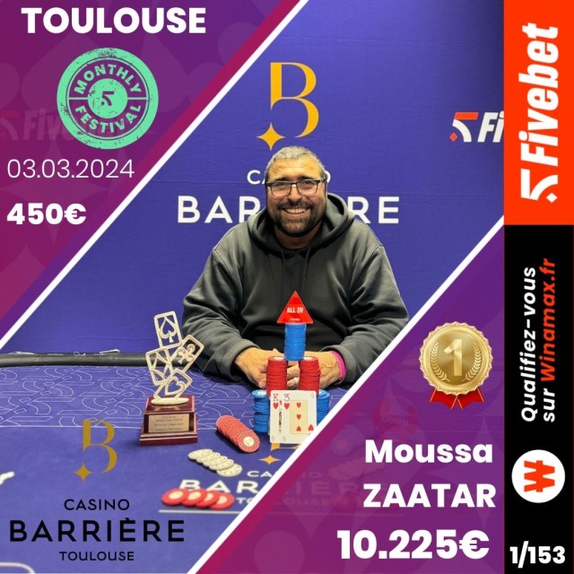 Du 29 février au 3 mars, le Casino Barriere de Toulouse organisait son festival « Toulouse Monthly Poker », en partenariat avec Fivebet. Moussa Zaatar décroche la timbale sur le Main Event. Sur le Main […]