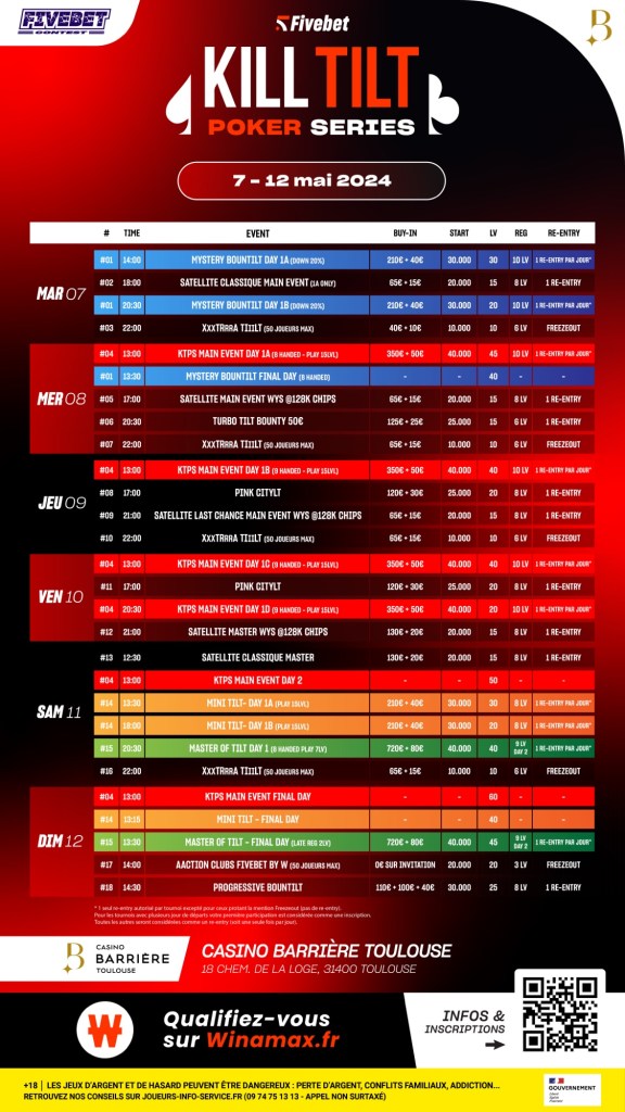 Les Kill Tilt Poker Series débutent ce mardi 7 mai au Casino Barrière Toulouse et c’est un Festival qui fait déjà beaucoup parlé de lui. Toute la Team Fivebet sera sur place mais aussi Kill Tilt.