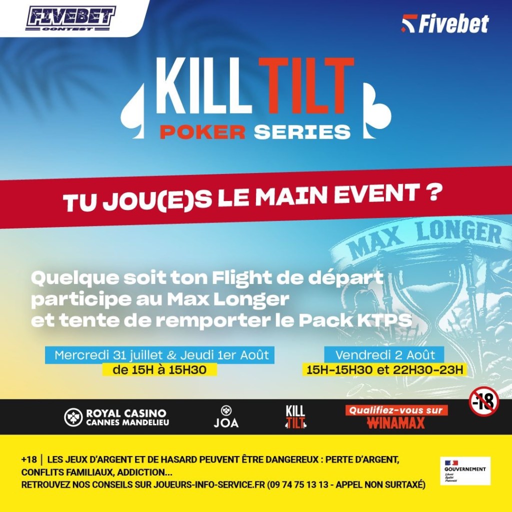 La communauté poker est en ébullition avec l’arrivée des Kill Tilt Poker Series à Cannes-Mandelieu cet été. Peanuts, Shishi, Flavien Guenan, et Sylvain Loosli vous invitent à les rejoindre pour des défis et des tournois de poker du 31 juillet au 4 août au Royal Casino JOA de Cannes Mandelieu.