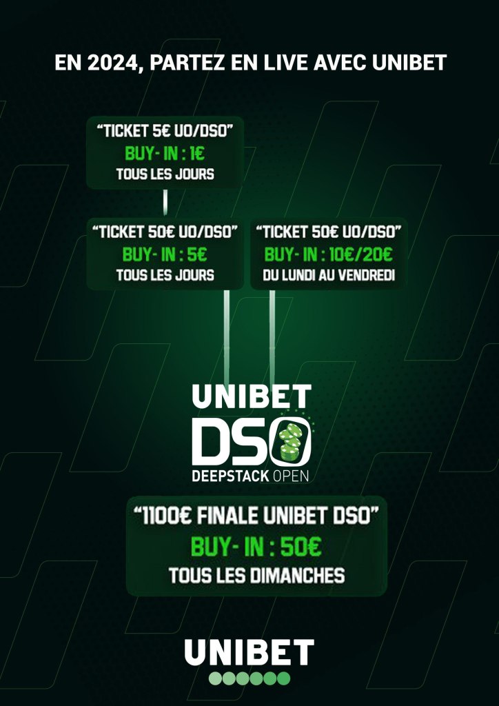 Les satellites UDSO sont déjà ouverts sur Unibet.fr et Unibet.com, permettant à tous les passionnés de poker de se qualifier à moindre coût. Chaque semaine, pour seulement 1€, vous pouvez tenter de décrocher votre ticket pour le Main Event ou même un package complet pour le festival.