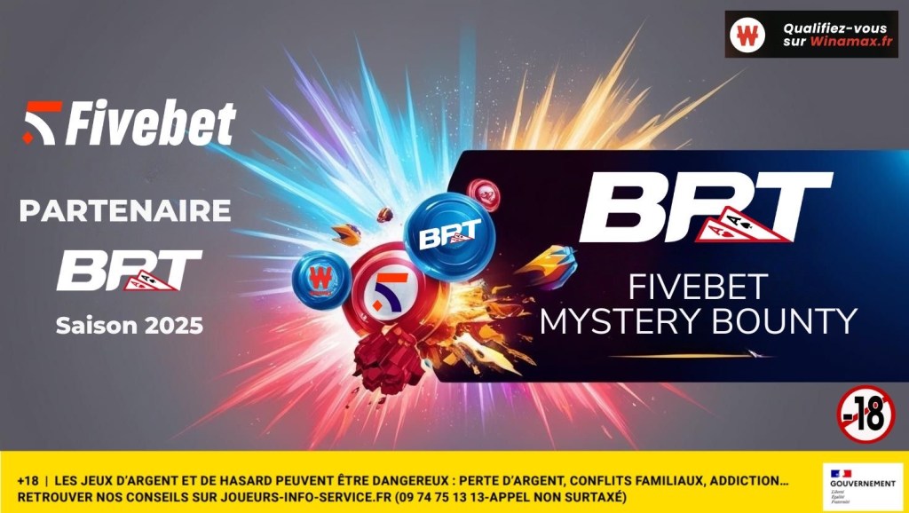 • Fivebet Mystery Bounty (300 €) : Un tournoi phare dont l’accès sera possible via des qualifications organisées chaque jeudi à 21h15 grâce au tunnel de qualification Winamax Festival Fivebet.
