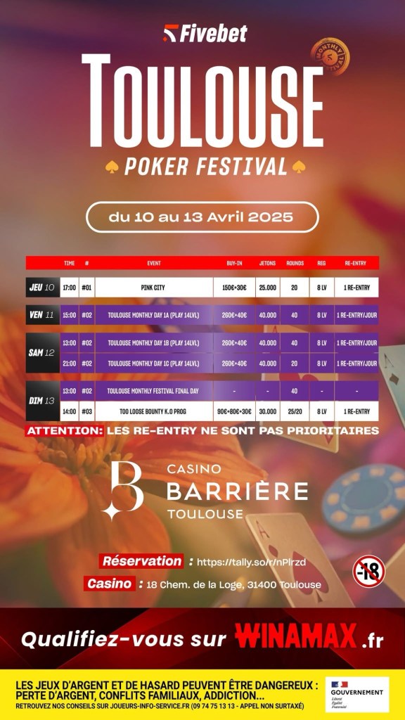 Toulouse Poker Festival – Du 10 au 13 avril au Casino Barrière
