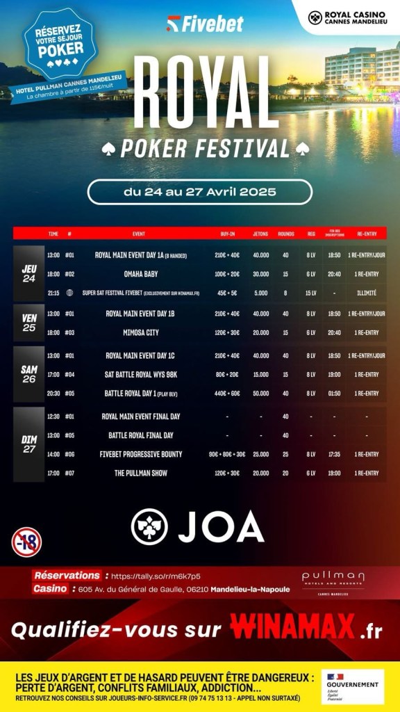 Royal Poker Festival – Mandelieu, du 24 au 27 avril