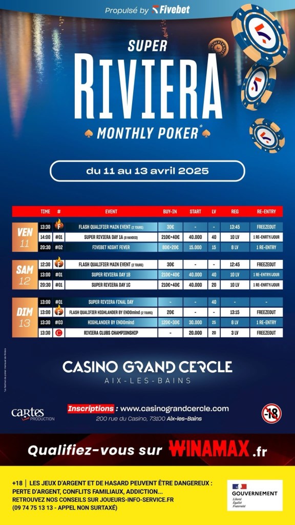 Super Riviera Monthly Poker – Aix-les-Bains, du 11 au 13 avril