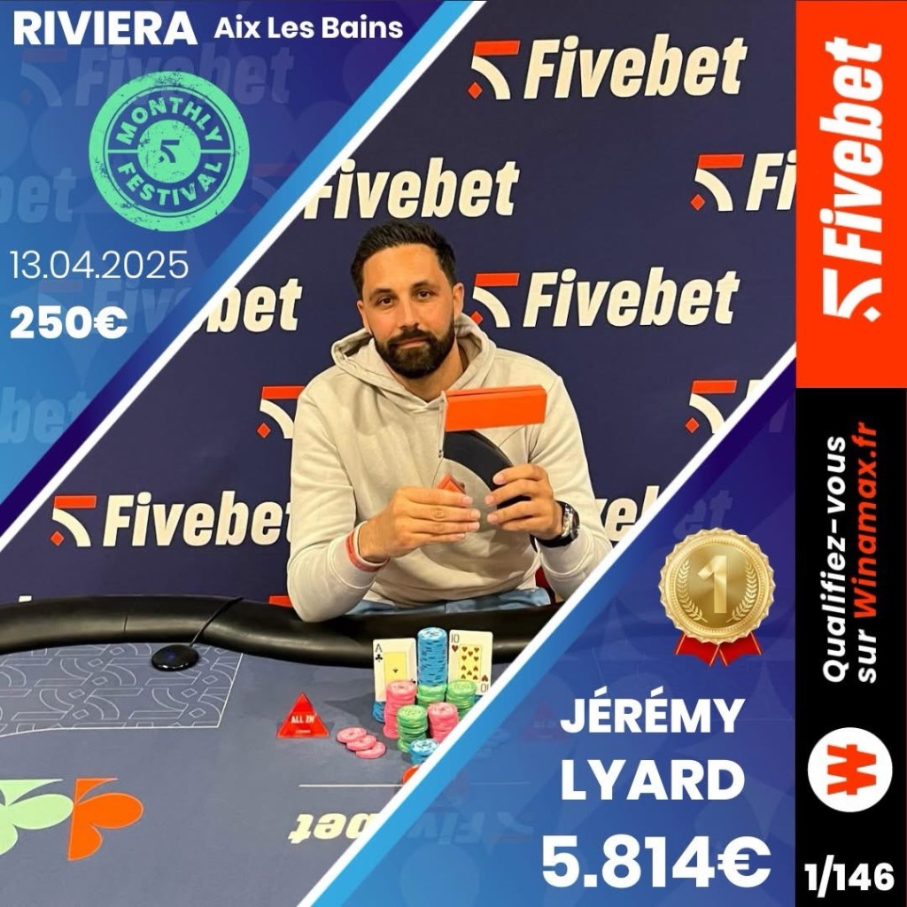 Le week-end dernier, le Casino Grand Cercle d’Aix-les-Bains a vibré au rythme du Monthly une nouvelle fois couronné de succès. Un rendez-vous orchestré par Fivebet. Le Main Event à 250 € a rassemblé 146 entrants, confirmant l’engouement intact pour ce rendez-vous du circuit régional.