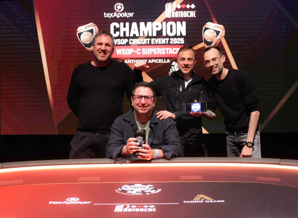 Le Pasino Grand d’Aix-en-Provence est décidément le jardin préféré d’Anthony Apicella. Trois ans après son titre sur le FPS 2022, le Corse récidive et s’adjuge cette fois le Ring #6 des WSOP Circuit, un Superstack à 750 € réunissant 280 entrants pour un prizepool de 181 440 €. Ce tournoi est organisé en partenariat avec TexaPoker.