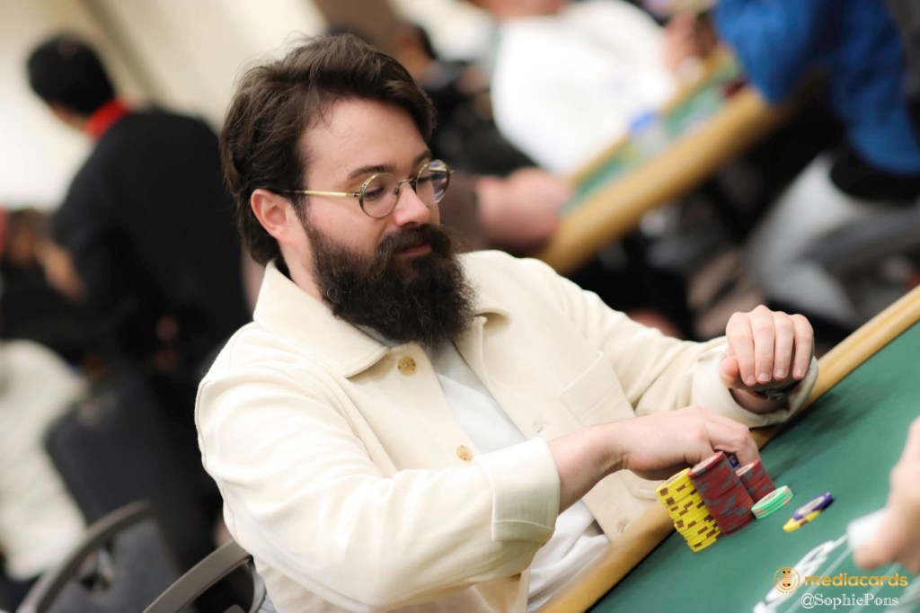Et parmi eux, cinq Français encore en lice, dont un sérieux client installé dans le haut du chipcount : Erwann Pecheux. Longtemps chipleader en fin de Day 2, il pointe au 4e rang provisoire avec 1,925 million de jetons, soit 160 blindes à la reprise. Il a notamment signé l’élimination de Joey Couden pour asseoir son stack.