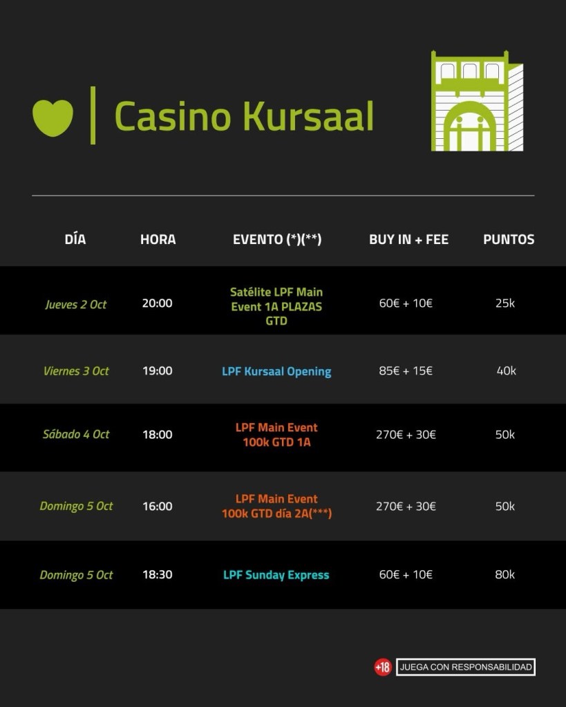 Toutes les infos et inscriptions : www.luckiapokerfestival.es ou mail à marketing.casinokursaal@luckia.com