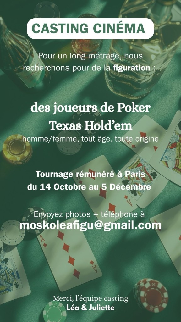 Le réalisateur Élie Wajeman prépare son prochain long-métrage, Le Joueur, produit par Diaphana, et la production lance un appel à figurants.