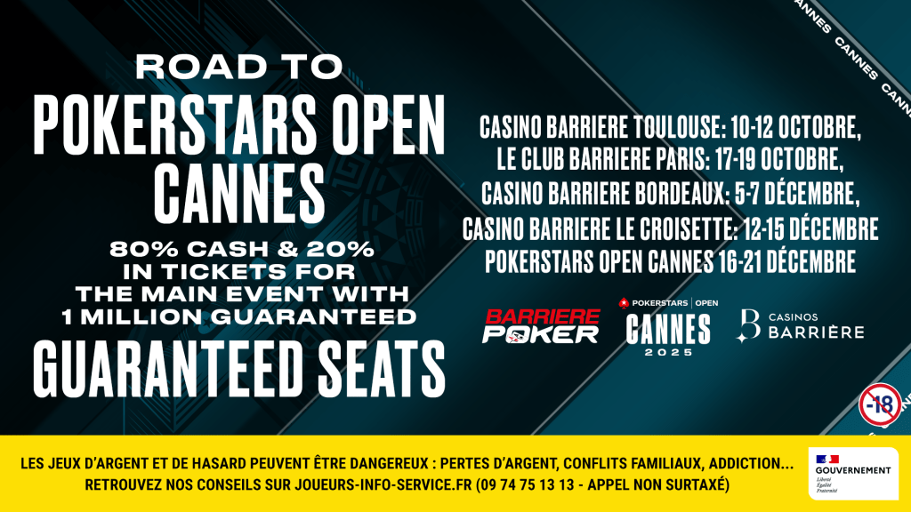 Le calendrier français du poker s’enrichit d’un nouveau rendez-vous. Barrière Poker et PokerStars lancent le “Road to PSO”, un mini-circuit live pensé comme une rampe de lancement vers le PokerStars Open Cannes (PSO), point d’orgue de la saison 2025.
