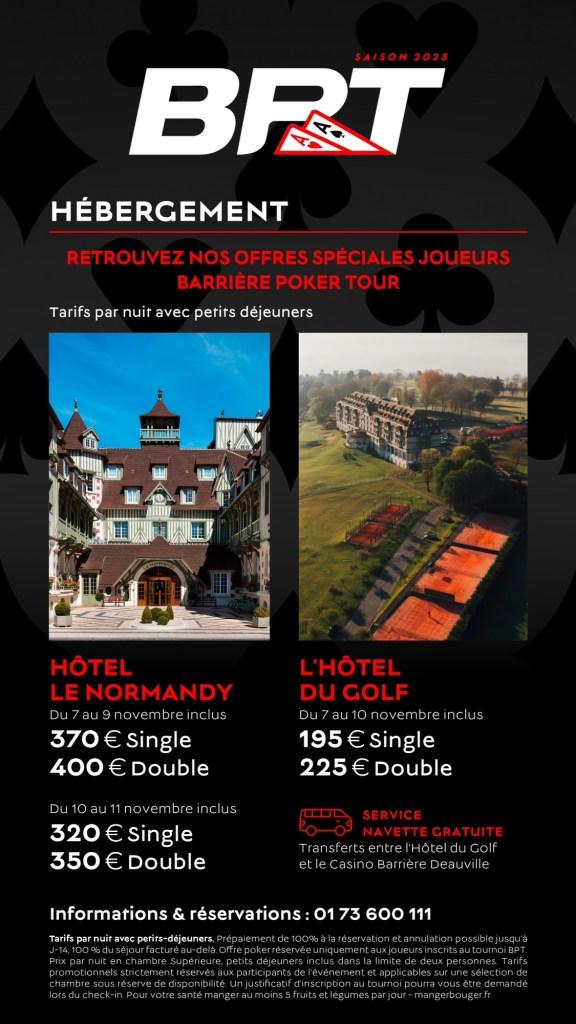 « Le Casino Barrière Deauville est le lieu idéal pour vivre l’intensité et la convivialité d’un grand tournoi », souligne François-Stéphane Vergne, directeur général du Casino. De son côté, Brian Benhamou, directeur de l’offre poker du Groupe Barrière, insiste sur « l’esprit familial et compétitif » qui fait du BPT un circuit à part : « C’est un vrai moment de poker comme on les aime, dans un cadre unique et chargé d’histoire. »