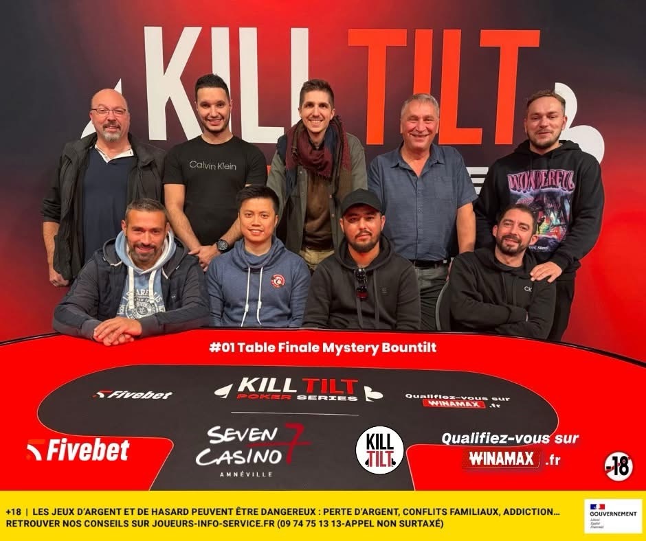 Ambiance électrique ce week-end au Seven Casino d’Amnéville, où les Kill Tilt Poker Series ont débuté sur les chapeaux de roue. Premier grand rendez-vous du festival, le Mystery Bountilt a rassemblé 361 entrées, confirmant l’attrait du format phare signé Kill Tilt.