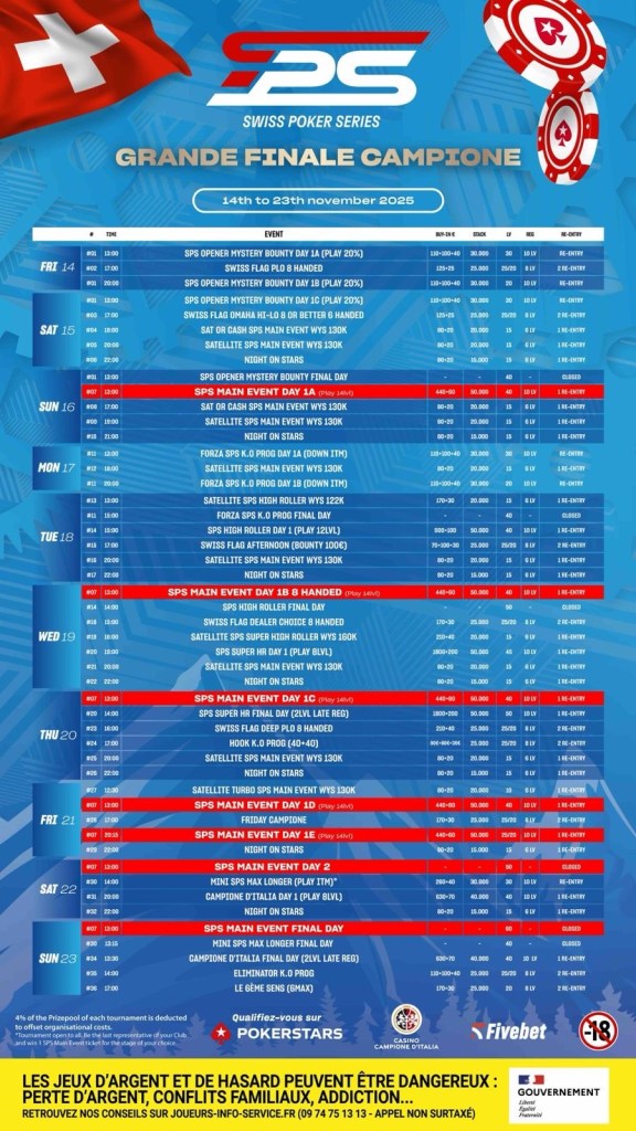 Avec son cadre somptueux, son programme équilibré et une affluence internationale déjà annoncée, la grande finale des Swiss Poker Series promet d’être l’un des plus beaux festivals de cette fin d’année.