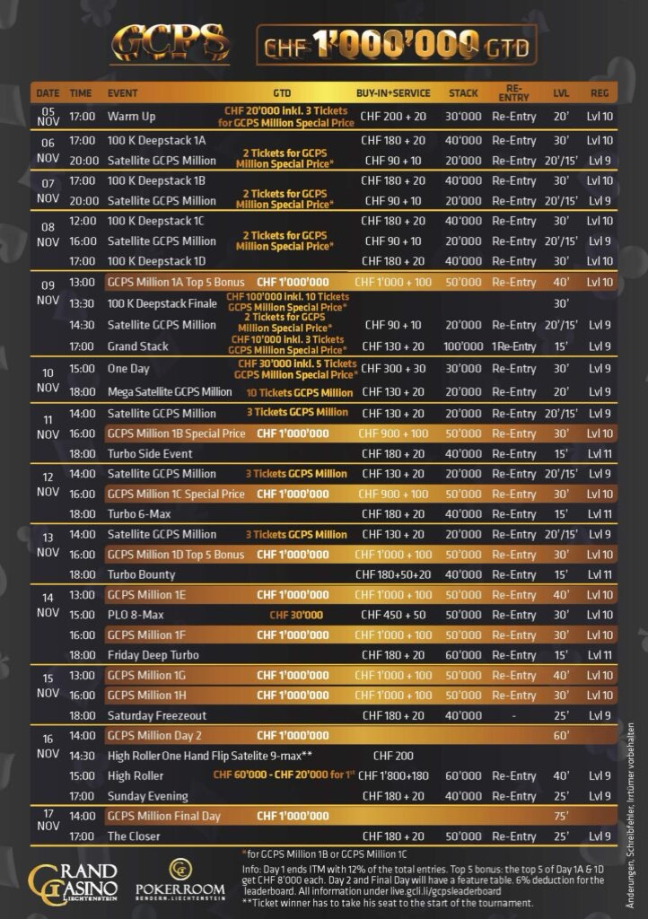 GCPS Million, du 5 au 17 novembre 2025 au Grand Casino Liechtenstein.
