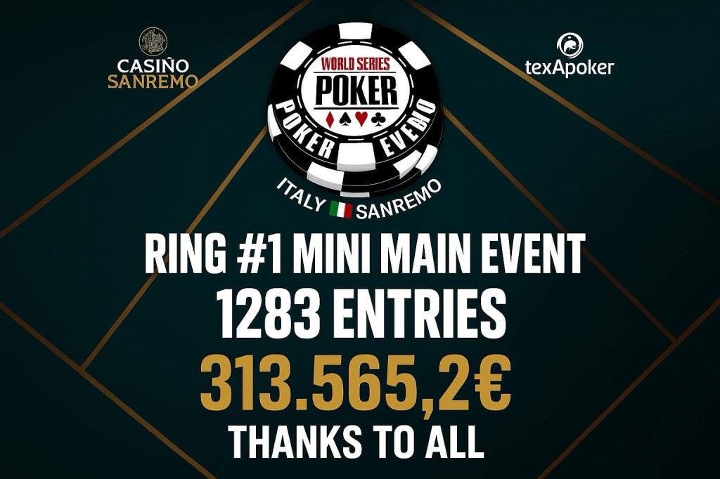 Sanremo confirme, une nouvelle fois, son statut de place forte du poker européen. Pour l’ouverture du WSOP Circuit 2025, l’Event #1 — un Mini Main Event à 300 € avec 4 Days 1 — a littéralement explosé les compteurs avec 1 283 entrées, établissant un nouveau standard pour l’étape italienne.