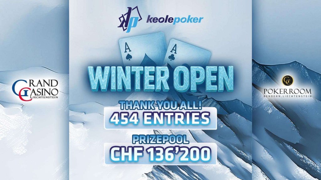 Carton plein au Grand Casino Liechtenstein pour les Keolepoker Winter Open. Les deux derniers flights disputés le 31 janvier ont fait grimper le compteur à 454 entrées, permettant au tournoi CHF 300 + 30 de dépasser largement sa garantie de CHF 100 000 pour atteindre un prizepool de CHF 136 200, incluant 5 tickets WSOPC à CHF 1500.