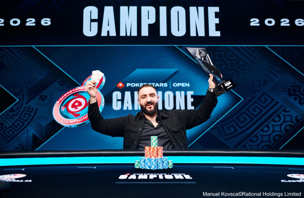 Le rideau est tombé sur le 1100€ Main Event du PokerStars Open au Casino di Campione, et c’est la Suisse qui repart avec le trophée. Après un deal conclu à trois joueurs restants, Elvir Nuhiu a fait parler son sang-froid pour s’imposer et encaisser 200 640 €, devant l’Italien Vincenzo Petruzziello.