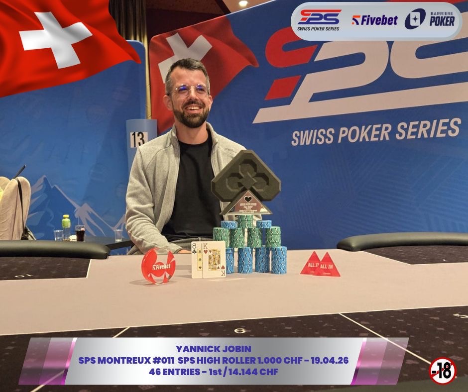 Le High Roller à 1 000 CHF a été remporté par Yannick Jobin pour 14 144 CHF, au terme d’un tournoi à 46 entrées.
